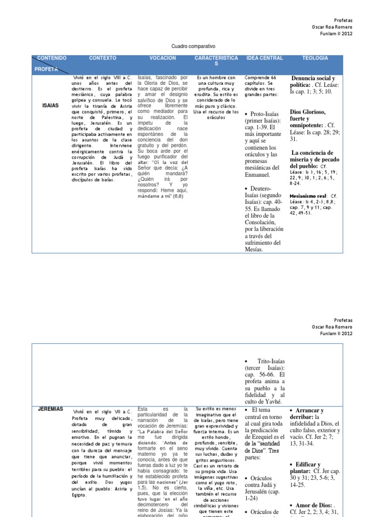 Quiénes eran los Son analistas profundos del presente y no adivinos del futuro. Free shipping on qualified orders. Cuadro comparativo CONTENIDO PROFETA Vivi en el siglo VIII aC.